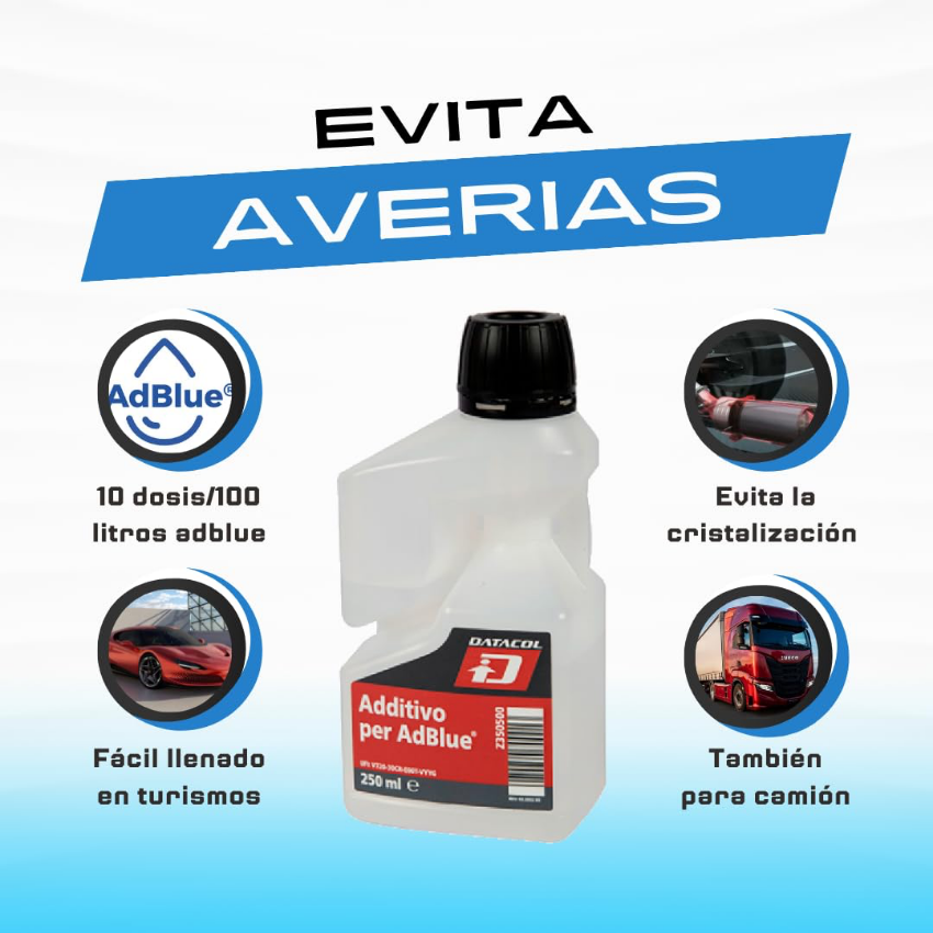 Ante estos problemas, este aditivo para AdBlue es la mejor solución ya que mantiene el sistema SCR en óptimas condiciones. Está diseñado para abordar específicamente los problemas que genera el AdBlue y la cristalización.