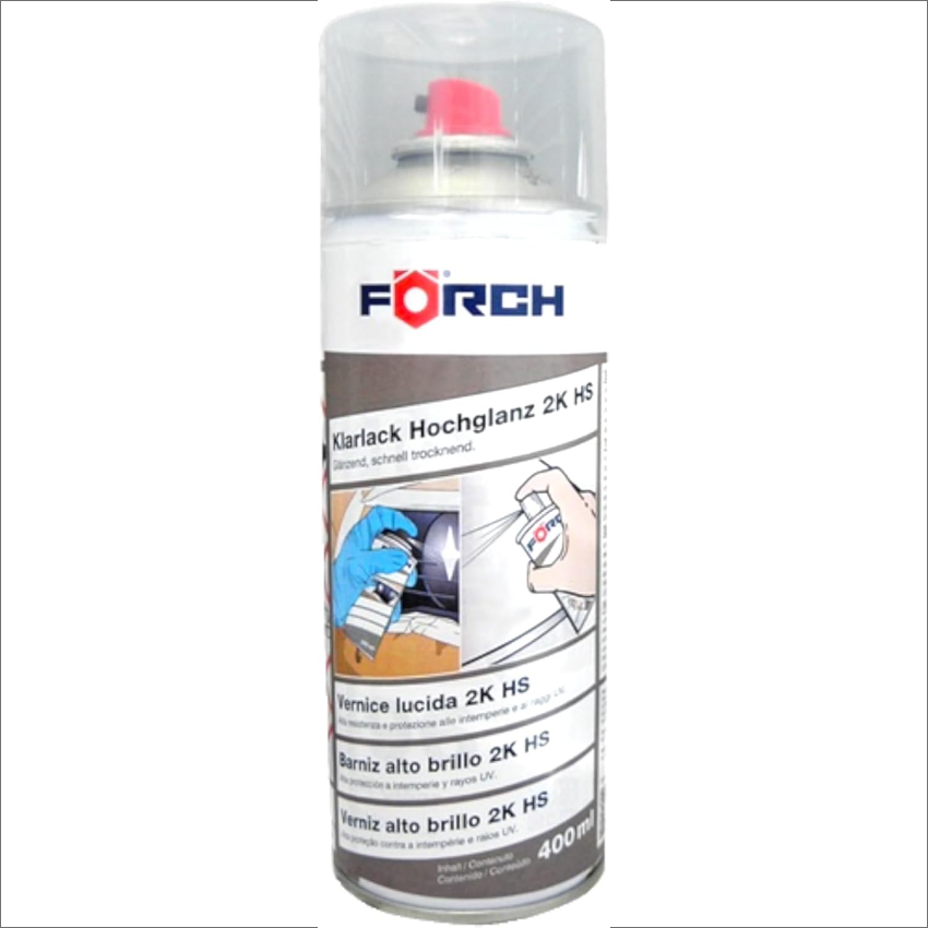 Descubre el Barniz Alto Brillo 2K HS de FORCH, una solución profesional para el mantenimiento y restauración de faros de automóvil, pilotos y cupulas de moto, Este revestimiento transparente de 400 ml ofrece un acabado brillante excepcional que protege y realza la apariencia de los faros.