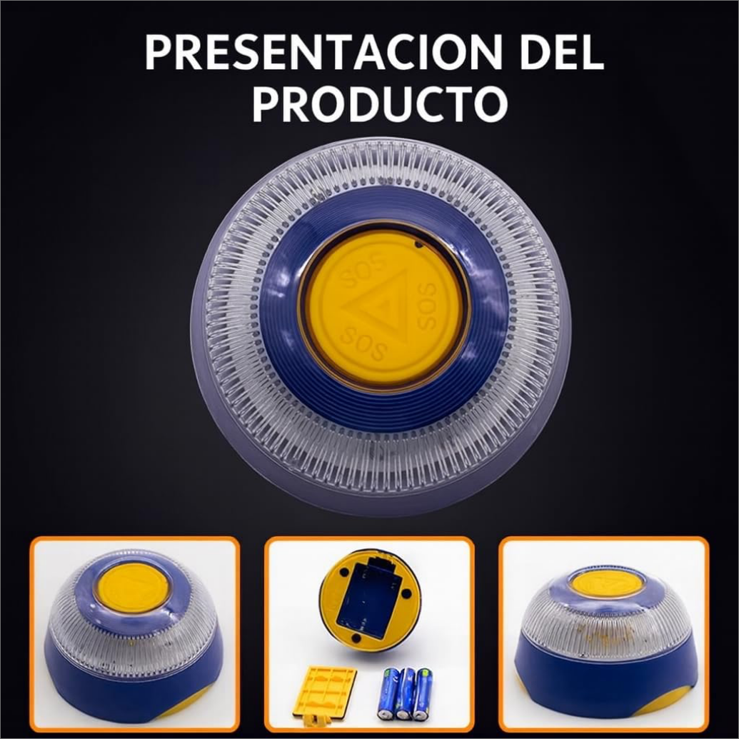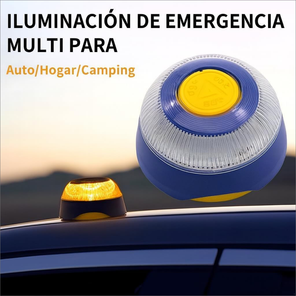 - Luz de emergencia 360° de alta visibilidad instantanea: Proyecta un destello ámbar potente, visible a gran distancia y diseñado para condiciones adversas. Su activación con un solo botón SOS facilita el uso rápido y seguro sin necesidad de bajar del vehículo.
