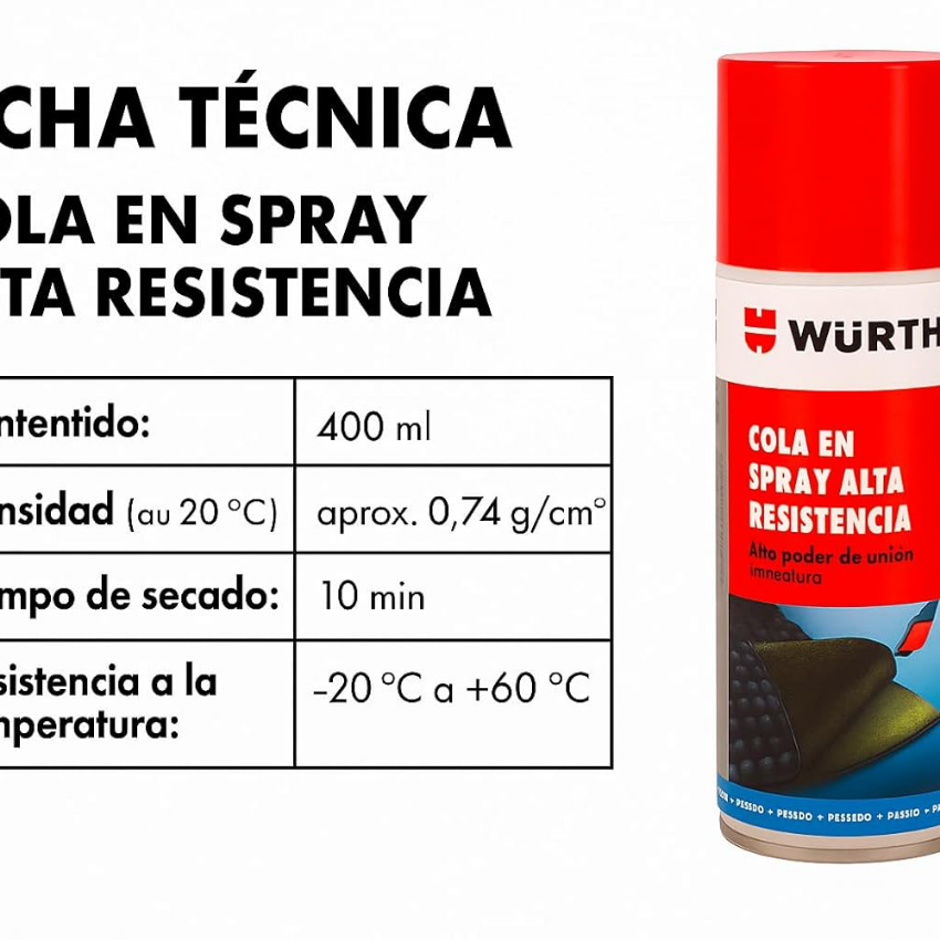 La Cola Adhesiva en Spray WURTH de 400 ml es la solución ideal para quienes buscan una adhesión fuerte y rápida en diversos materiales. Su fórmula de alta resistencia y secado rápido permite unir eficazmente papel, cartón, tela, espuma, plástico y más. El formato en aerosol asegura una aplicación uniforme y precisa, reduciendo el desperdicio y mejorando la eficiencia. Ya sea para proyectos profesionales o de bricolaje, este adhesivo en spray es una herramienta versátil y confiable.