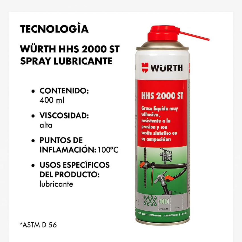 Descubre el spray de grasa líquida WURTH de 500 ml, un lubricante de alta calidad diseñado para condiciones exigentes. Su fórmula super adhesiva proporciona una excelente resistencia a la presión y velocidad en zonas de lubricación críticas. Ideal para el mantenimiento de cadenas y rodamientos en motos, karts y maquinaria industrial.